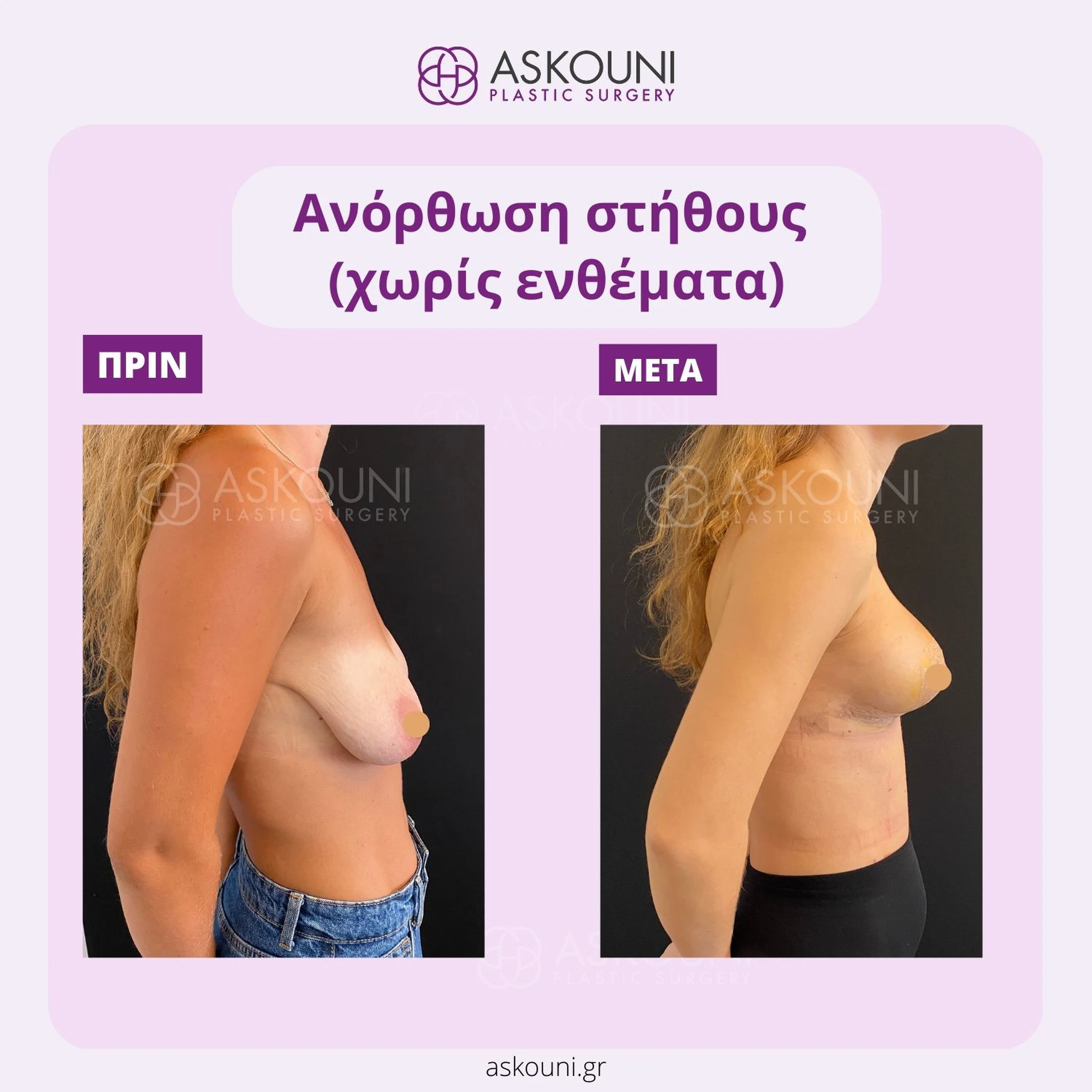 - One breast may sit lower than the other, requiring a lift to improve symmetry.